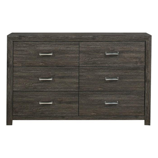 Cotterill Collection by Homelegance Furniture Gray finish Crafted from birch veneer 6 Drawers Silver knob pulls Ball bearing side glides 67.25 x ...