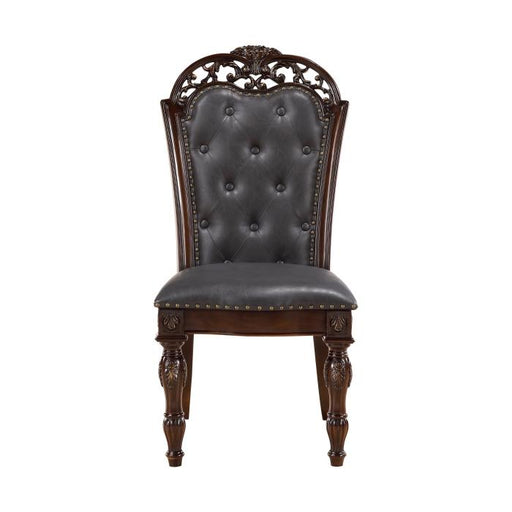 Rich in the aesthetic of Old-World tradition, the design of the Adelina Collection is the culmination of classic accenting that creates an elegant presentation for your bedroom. The serpentine front of the chest features framed drawers, fixed-pull traditional hardware, acanthus leaf carvings, as well as bun feet. Furthering the timeless aesthetic that permeates the collection, is the cherry finish over birch veneer and pine solids. 39.5 x 18.5 x 50H