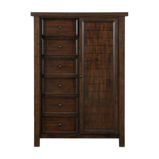 The transitional framing of the Logandale Collection allows for versatile placement within a number of classic bedroom decors, making a perfect choice for your home. An antique gray finish is utilized over mango veneer for subtle highlighting of its distinct grain. Dark finished metal knob and pull hardware front each drawer of the dresser, creating a complementing accent to the collection.