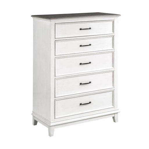 Exuding the aesthetic of casual country living, the Chesterton Collection’s classic lines create a look that perfectly captures your preference for farmhouse design. The two-tone finish of the collection is a warm contrast of dark brown and antique white. The knob and bar hardware that fronts the drawers of the dresser, nightstand and chest provide distinct complementing contrast to the collection’s finish. Providing modern functionality to the nightstand is the back-mounted USB and power receptacles, allowing for convenient access to your electronic devices as they charge.