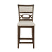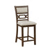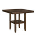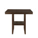 Create a cozy and inviting dining space with this stylish 5-piece counter height dining set. Crafted from Mindy wood veneer, solid wood, and engineered wood with a rich dark brown finish, this set includes a counter height table and four matching chairs. The table features a convenient open shelf for storage or display, while the chairs offer comfortable seating with beige textured fabric upholstered cushions. Perfect for casual meals or entertaining, this set comfortably seats four and adds a touch of warmth and elegance to any kitchen or dining area.