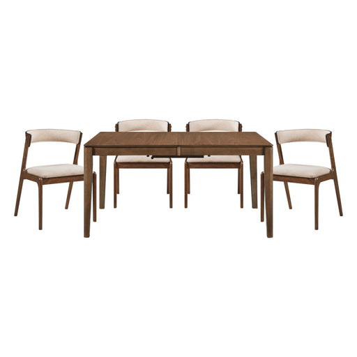 Product DescriptionMid-Century Modern inspires the design of the Leawood Collection dining offering. Beige textured fabric upholstery covers the se...
