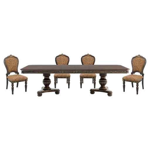 Russian Hill Collection by Homelegance Cherry finish Made of cherry veneer and wood Separate extension leaf Table extends by pulling both ends and...