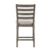 The traditional styling of the Tigard Collection lends timeless appeal to the look of your casual dining space. With subtle hints nodding to the Arts and Crafts design movement, the framed plank counter height tabletop, ladder back counter height chairs, and server each feature classic lines that solidify the versatile aesthetic of the collection. Covering the padded seats of the counter height side chairs is a neutral tone fabric upholstery, complementing the traditional cherry finish of the collection’s acacia veneer.